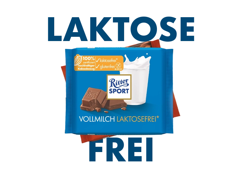 WENN WENIGER MEHR IST. Wir sind der Meinung, dass jeder ein Recht auf Schokolade hat. Deshalb spalten wir bei dieser Sorte die Laktose in Traubenzucker und Galaktose. So können auch Menschen mit einer Laktoseunverträglichkeit die kräftige Milchnote unbeschwert genießen. Beim Geschmack sind sich dann zum Glück alle wieder einig: lecker! Zutaten Vollmilchschokolade laktosefrei, glutenfrei. Kakao: 34 % mindestens. Zucker, Kakaomasse, Kakaobutter, laktosefreies TrockenMILCHerzeugnis, BUTTERreinfett, Emulgator: Lecithine (SOJA). Kann enthalten: Erdnüsse, Schalenfrüchte, Sesam, Ei. * Die RITTER SPORT Vollmilch laktosefrei hat einen Laktosegehalt von maximal 0,1%. Bei der Herstellung des Trockenmilcherzeugnisses wird Milchzucker mit Hilfe des Enzyms Laktase in Glukose und Galaktose umgewandelt. Durchschnittliche Nährwertangaben (pro 100g) Brennwert / Energie2316 kJ (555 kcal) Fett35g davon gesättigte Fettsäuren21g Kohlenhydrate49g davon Zucker49g Eiweiß9,7g Salz0,19g Weitere Informationen Nettofüllmenge: 100 g Grundpreis: 27,90 € / kg Mindestens haltbar bis: siehe Verpackung Kühl und trocken lagern. Hersteller: Alfred Ritter GmbH & Co. KG D-71111 Waldenbuch